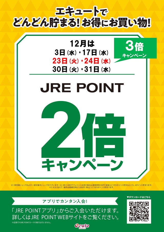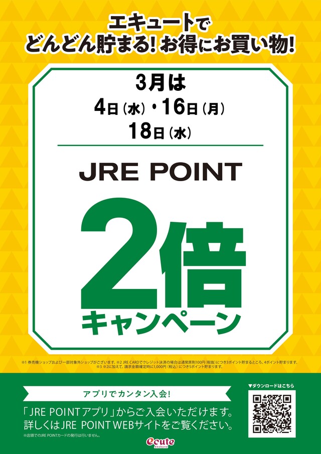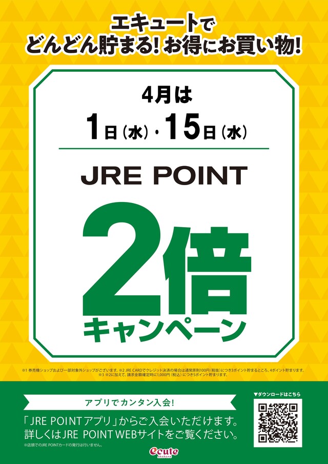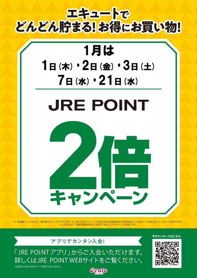 \第1・第3水曜日はJRE POINT 2倍デー!/