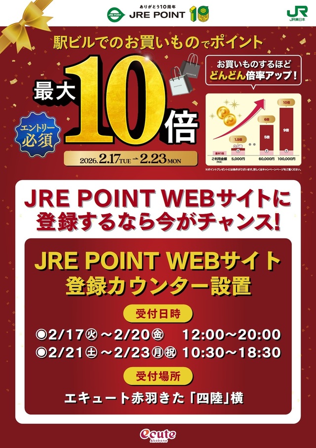 JRE POINT ポイント10周年第5弾!(WEBサイト登録カウンター実施中)