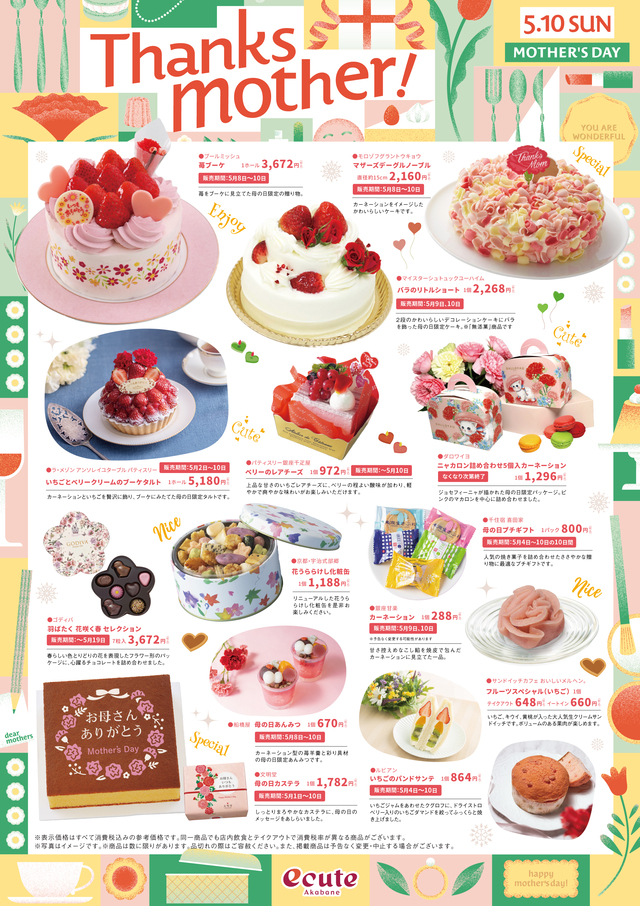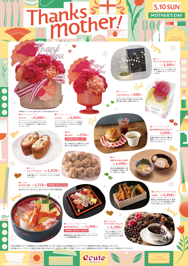 Thanks Mother!2026年4月27日(月)~5月10日(日)今年の母の日は5月10日!今年の母の日は5月10日(日)です。お母さんや大切な人に感謝を伝える贈り物をしてみませんか?♡商品紹介♡