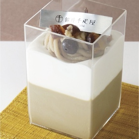 香ばしいほうじ茶ミルクプリンに、ふんわりホイップと濃厚なマロンクリームを重ね、渋皮栗をたっぷり添えました。ほんのり塩気のあるかのこ豆が甘さを引き締め、黒みつのコクとともに栗の旨みを引き立てる和洋折衷スイーツです。