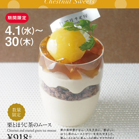 今月の栗スイーツ:栗とほうじ茶のムース 銀座千疋屋・パティスリー銀座千疋屋では、2026年4月1日(水)〜4月30日(木)の期間にて、栗スイーツ「栗とほうじ茶のムース」を数量限定で発売します。栗のコクとほうじ茶の香ばしさが広がる味わいをぜひご堪能ください。 「栗とほうじ茶のムース」 栗の風味豊かなムースを土台に、香ばしいほうじ茶のムースとゼリーを合わせました。栗ムースとほうじ茶ムースの間にサクサクのミルクチョコクランチと刻んだ栗を忍ばせた、和と洋の魅力が重さなり合うスイーツです。 【商品情報】 《テイクアウト 数量限定商品》 ・商品名:栗とほうじ茶のムース ・価格:¥918(税込) ・特定原材料等:乳成分・小麦・大豆・ゼラチン ※写真はイメージです。 ※数量限定商品です。定数に達し次第、販売終了となりますので、予めご了承ください。