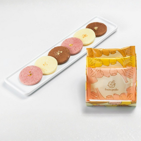 クッキー生地にホワイトチョコレートとフルーツパウダーを合わせて焼き上げた、しっとりとした食感のクッキーです。イチゴ・チョコバナナ・レモンの3種をご用意しております。