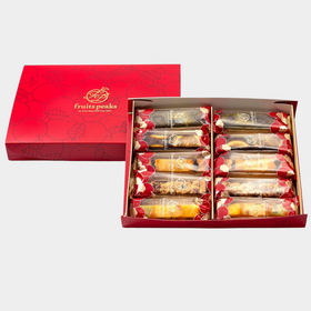 フルーツピークス厳選の滋味溢れるドライフルーツを たっぷりと使用した贅沢な焼菓子です。 香ばしいシュクレ生地(クッキー生地)としっとり軽い パウンド生地を組み合わせた、ドライフルーツのおいし さを最大限に生かす香ばしい生地を焼き上げました。