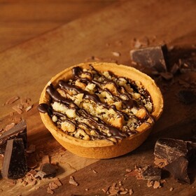 さっくり軽やかなタルトに、ミルクとスイートをブレンドした濃厚チョコガナッシュをとろり。