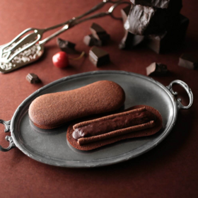 中には、濃厚なチョコガナッシュを合わせたコク深いムースリーヌをたっぷり絞り、仕上げにミルクチョコのコポーを散らして、口どけに華やかさを添えました。