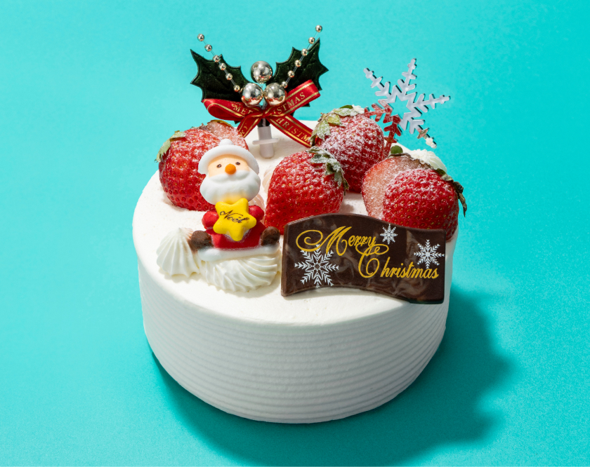 限定ふわりと軽やかなスポンジに、コクのある生クリーム。中には甘酸っぱい苺ジャムと、香り豊かな苺のコンポートを丁寧にサンドしました。仕上げにはフレッシュな苺とクリスマスオーナメントをあしらいました。