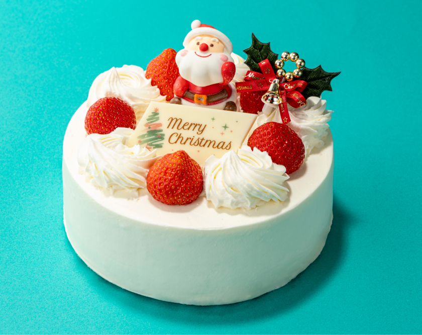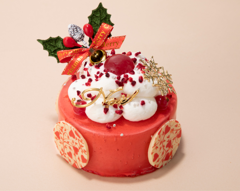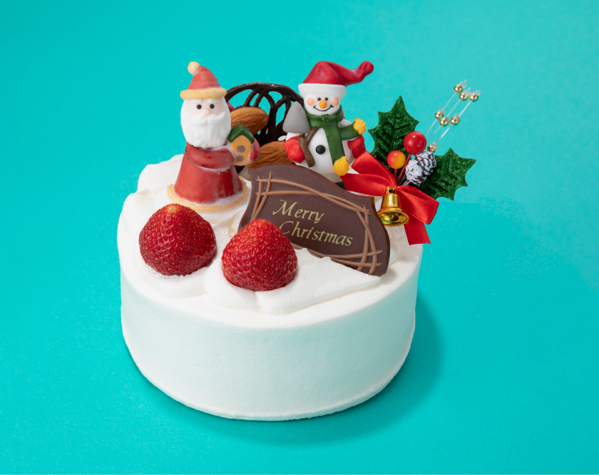限定ふわりと軽やかなスポンジに、コクのある生クリーム。中には甘酸っぱい苺ジャムと、香り豊かな苺のコンポートを丁寧にサンドしました。仕上げにはフレッシュな苺とクリスマスオーナメントをあしらいました。