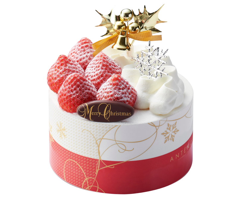 大釜でじっくりと時間をかけて焼き上げた、きめ細かくふわふわのスポンジに、北海道産生クリームをブレンドした口どけなめらかなクリームと、新鮮な国産いちごを贅沢にサンドし、シンプルながら素材の良さを最大限に引き立てた、老舗、モナムール清風堂の人気No1のクリスマスケーキです。エキュート立川限定デザインに彩りました。