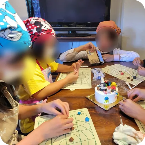 自分の夢を事前に親子で考え、おしゃべりしながらイメージを膨らませて、家族で過ごす時間そのものを大切にしながら、当日はその夢を形にしてケーキに飾ります。事前の準備から当日まで、会話を楽しみながら一つの作品を作り上げるワークショップです。
