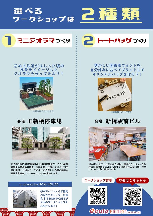 少し難易度高めなミニジオラマ制作や少しマニアックな鉄道モチーフのトートバッグづくりといった