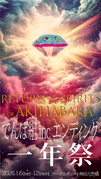 そのほかにも、元でんぱ組.incの相沢梨紗による観客参加型のインスタレーション展示、DSPM所属タレントによるアート作品展示などが入り乱れ、過去・現在・未来の混ざり合ったアキハバラが出現することでしょう。