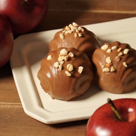 林檎の果肉を混ぜ込んでしっとり焼き上げたマドレーヌ生地を、香ばしいキャラメル風味のチョコレートでコーティングしました♪
