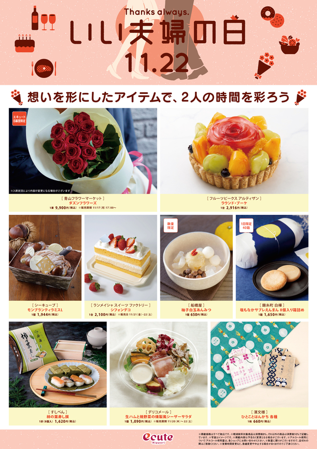 特別な日に一緒に楽しめるデリやスイーツ、思わず笑顔になる可愛いブーケなどがそろいました。