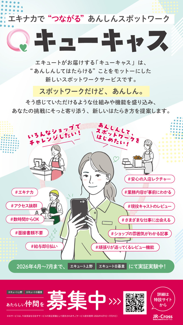エキナカで“つながる”あんしんスポットワーク 「キューキャス」