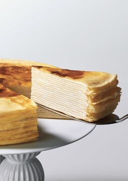 極限まで薄く焼き上げたクレープとフォークのすっと入る食感のベストバランスは、『本物のミルクレープ 』として誰にも真似できない唯一無二の美味しさです。