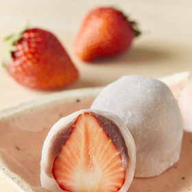 毎朝作り立て!白樺名物の「いちご大福」/1月5日より販売開始♪3Lサイズ以上の旬のとちあいかを使用。いちごが一番美味しい時期に召し上がって頂きたいので、1月~4月の限定販売です。ぜひお見逃しなく!