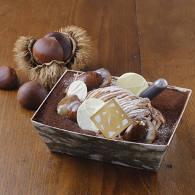 ふわっと香る栗の香りと甘みに、ほろ苦いラテシロップが染み込んだ、まるでマロンラテのような焼きティラミス。仕上げにマロン