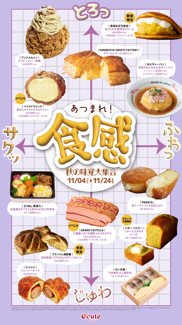 エキュート大宮の楽しい食感のスイーツやお惣菜を集めました!