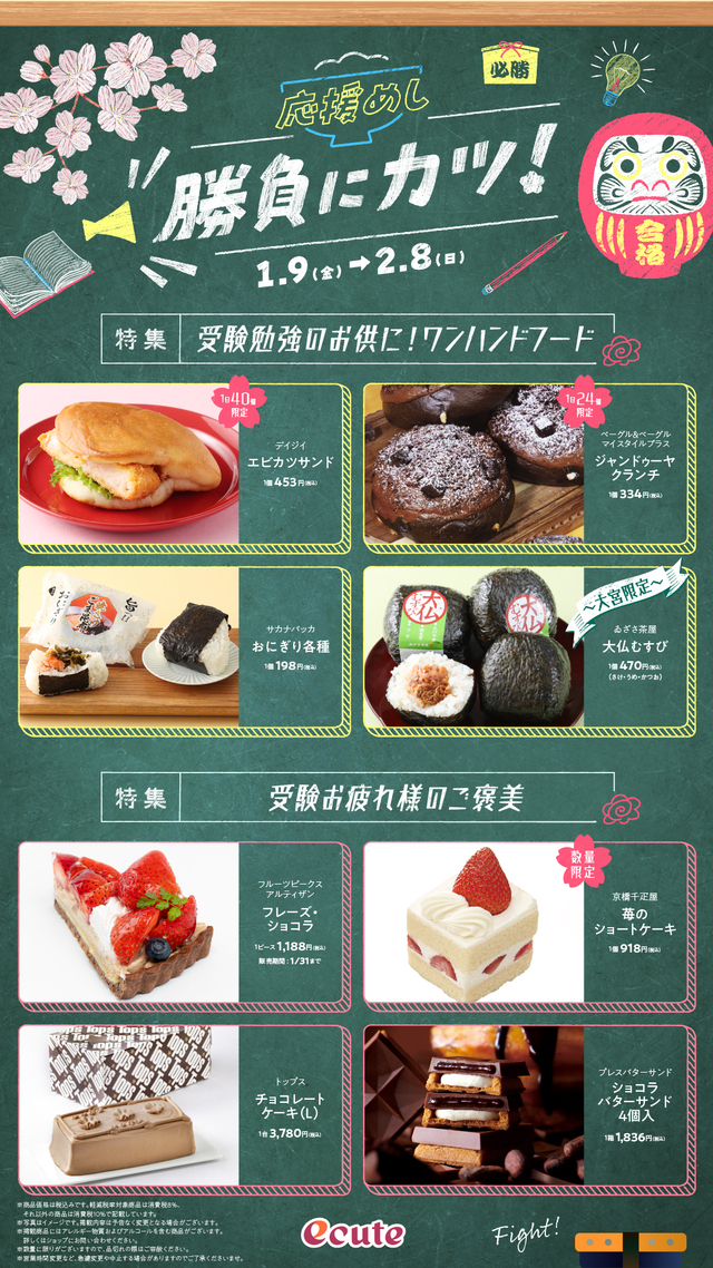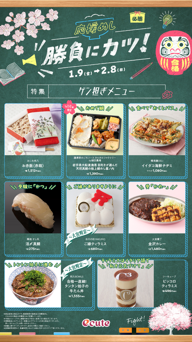 エキュート大宮は、グルメを通して受験生の皆様を応援しております。