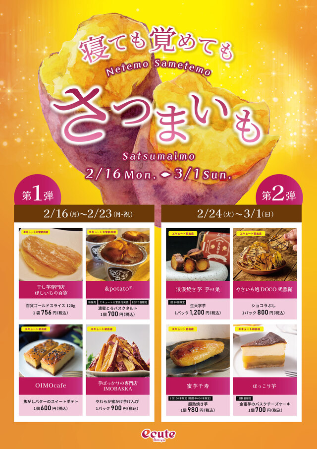 「寝ても覚めても」さつまいもを愛してやまない方々に捧ぐ、厳選したさつまいも専門店がエキュート大宮に集結します。