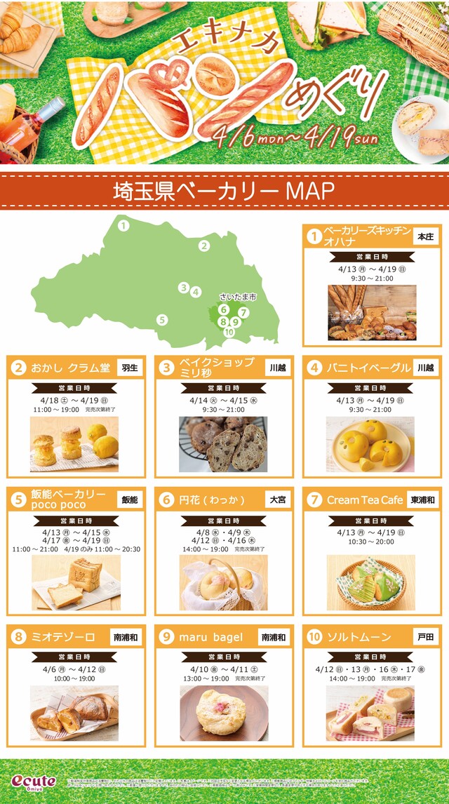 エキナカで埼玉県内の個性豊かなパンめぐりを気軽にお楽しみいただけます。