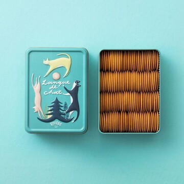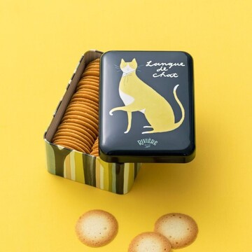 お菓子に添えられたストーリーにも、 ほっと心が和む、可愛らしい猫の缶に入ったクッキーが評判です。