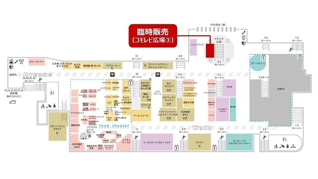- 中央改札南 臨時販売(コモレビ広場)