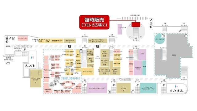 - 中央改札南 臨時販売(コモレビ広場)