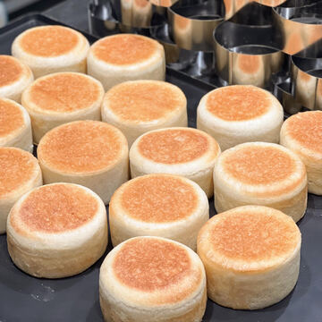 定番のプレーンは半分に割ってトーストしていただくと、むっちりカリカリになります。ソルトムーンのマフィンならではのモチモチ食感をぜひお試しください。