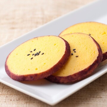 「クッキーになったおいも」は、さつまいもの輪切りのような可愛らしい姿と、ほっくりとした芋の風味を軽やかに楽しめる一枚。日持ちが良く個包装で、旅のお土産や職場への差し入れにも選ばれています。