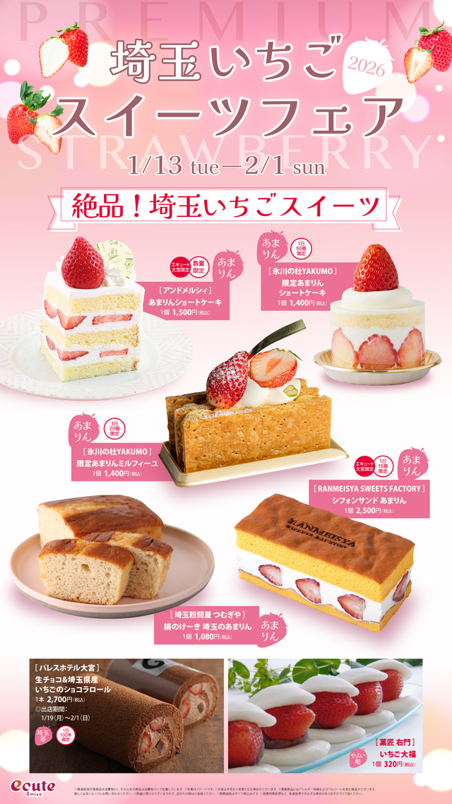 この時期限定、「埼玉いちご スイーツフェア」を開催!