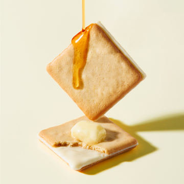 メープルシュガーを生地に練りこみ、 サクサクと軽い食感に焼いたクッキーでバター風味のチョコ※をサンド。