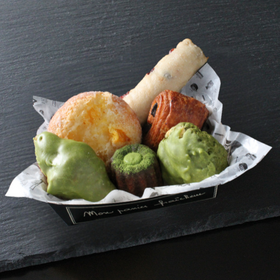 抹茶フェア限定商品とPAUL人気の定番商品、合わせて6点入った、いろいろなお味が楽しめるパンの詰め合わせ。 ミニ・パン・アソルティ(マッチャ) 1458円(税込)