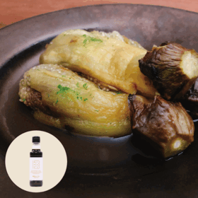 揚げ茄子には、米酢と仕上げだしを1対1で