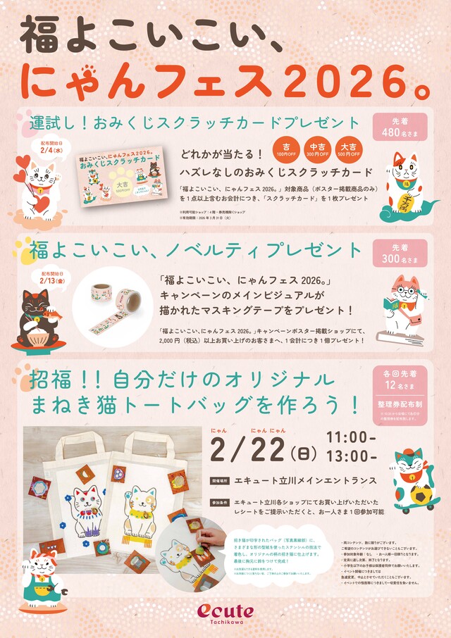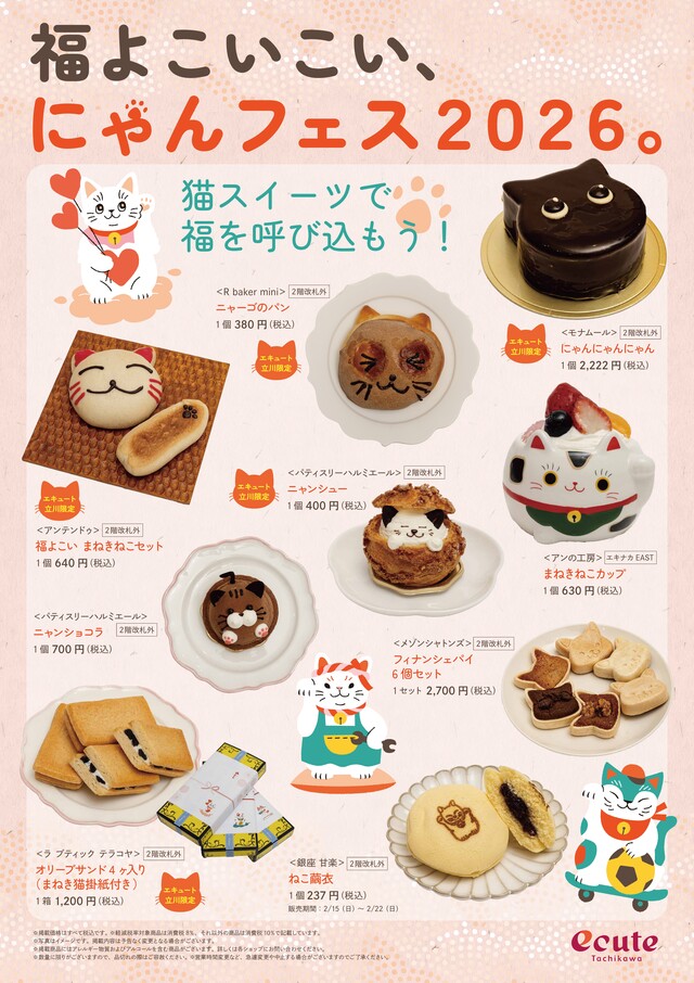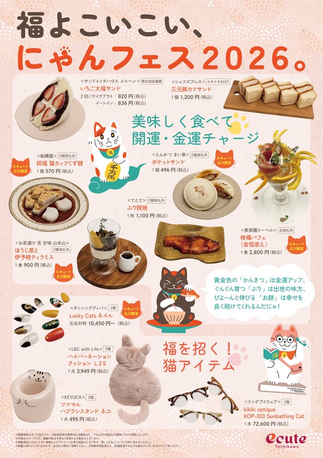 愛らしい猫たちと絶品グルメ・癒しグッズが運んでくるたくさんの「福」を、エキュート立川で一緒に受け取りませんか?🐈✨