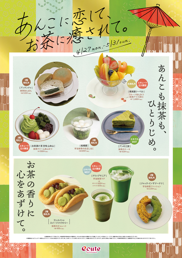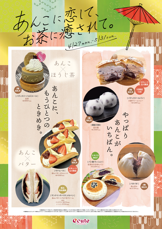 あんこスイーツや抹茶スイーツをはじめ、あんこ×バターの新定番なおいしさや、お茶とあんこを組み合わせた和スイーツが勢ぞろい。