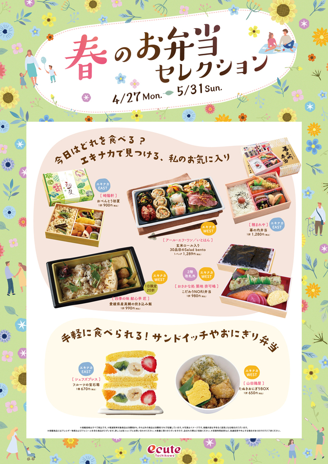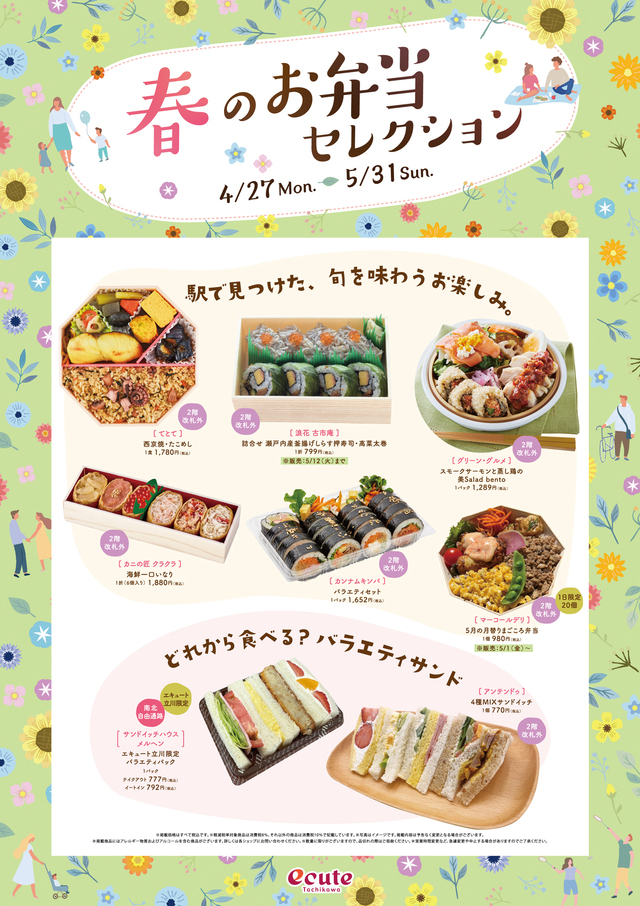 春のお出かけのお供に、とっておきのお弁当を集めました。旬の味を詰め込んだ一折や、手軽に食べられるサンド・おにぎり。