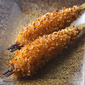 京都本店でも大人気の「豊年串」✨ 自家製つくねをもち米で包んで香ばしく焼き上げ、 仕上げに甘ダレをたっぷり。 カリカリ&もちもち食感がクセになります😋
