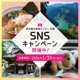「多摩のお気に入りスポットやグルメ」をテーマとした写真を撮影し「#私の多摩のお気に入り」のハッシュタグを付けてSNSで投稿してください。先着100名様に特典A「お出かけに便利なオリジナルグッズ」をプレゼント!さらに50件以上の「いいね!」獲得で特典B「多摩エリアの特産品」を先着30名様にプレゼント!
