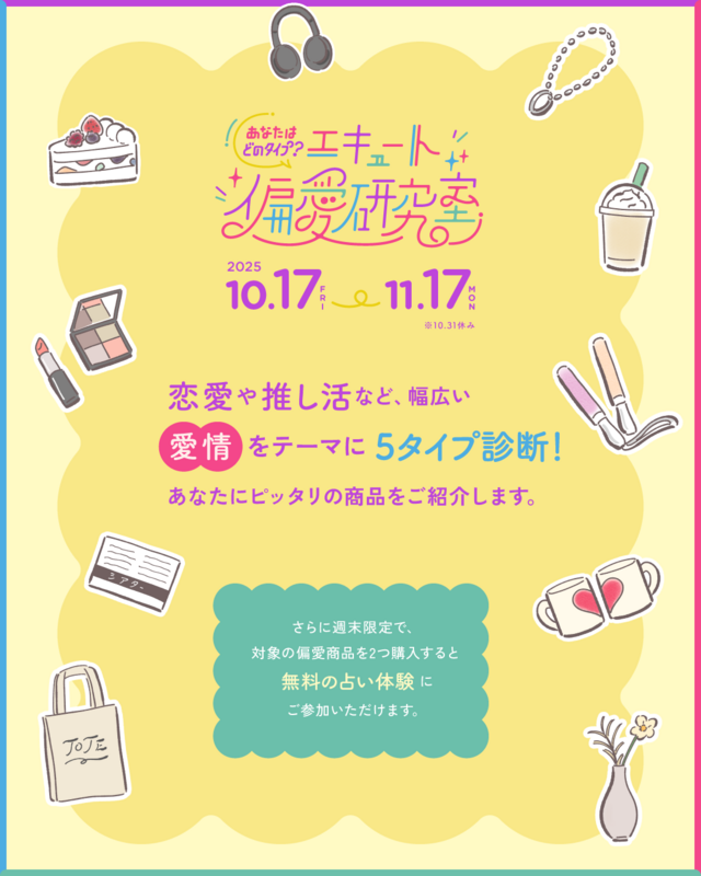 ♥ 『あなたはどのタイプ?エキュート偏愛研究室』では恋愛や推し活など幅広い"愛情"をテーマに、ぴったりのショップおすすめ商品をご紹介。